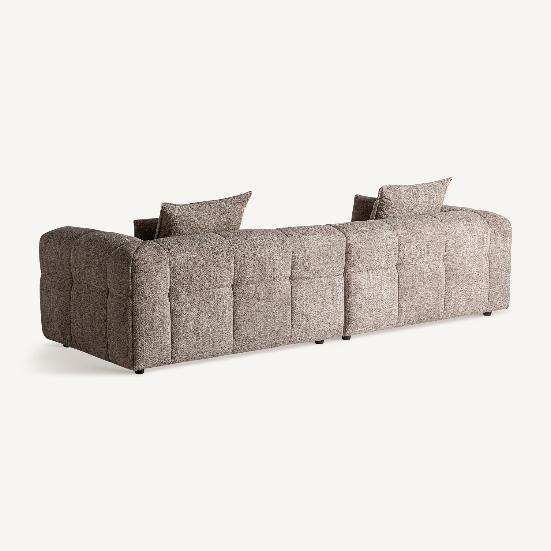 Barlin sofa förenar modern elegans med styrka och komfort. Klädd i slitstarkt polyester i neutrala bruna toner blir den en mångsidig möbel som enkelt smälter in i olika inredningsstilar. Den solida stommen i lärkträ och svart järn ger stabilitet och lång hållbarhet, medan de generösa måtten (B. 284 cm | D. 102 cm | H. 94 cm) erbjuder gott om plats för avkoppling.