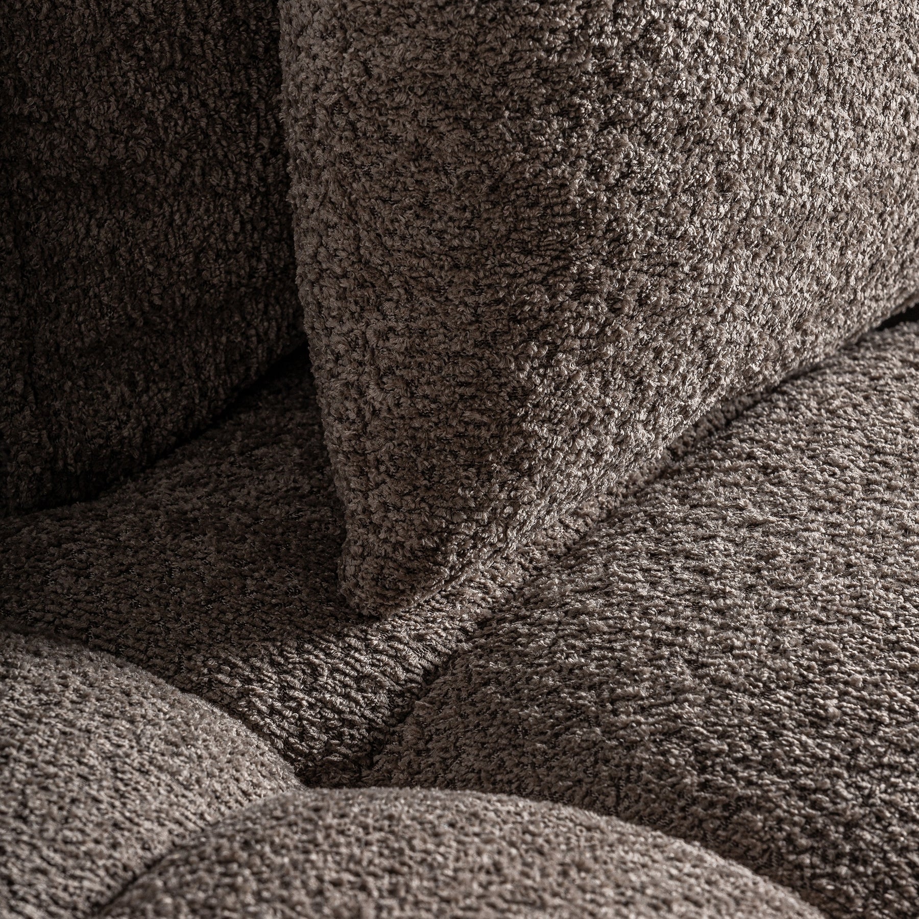 Handgjord med omsorg är varje exemplar unikt, och små variationer i materialets struktur betraktas som en del av dess autentiska karaktär. För extra komfort är soffans kuddar fyllda med en blandning av gåsfjäder, vilket ger en mjuk och inbjudande känsla.
